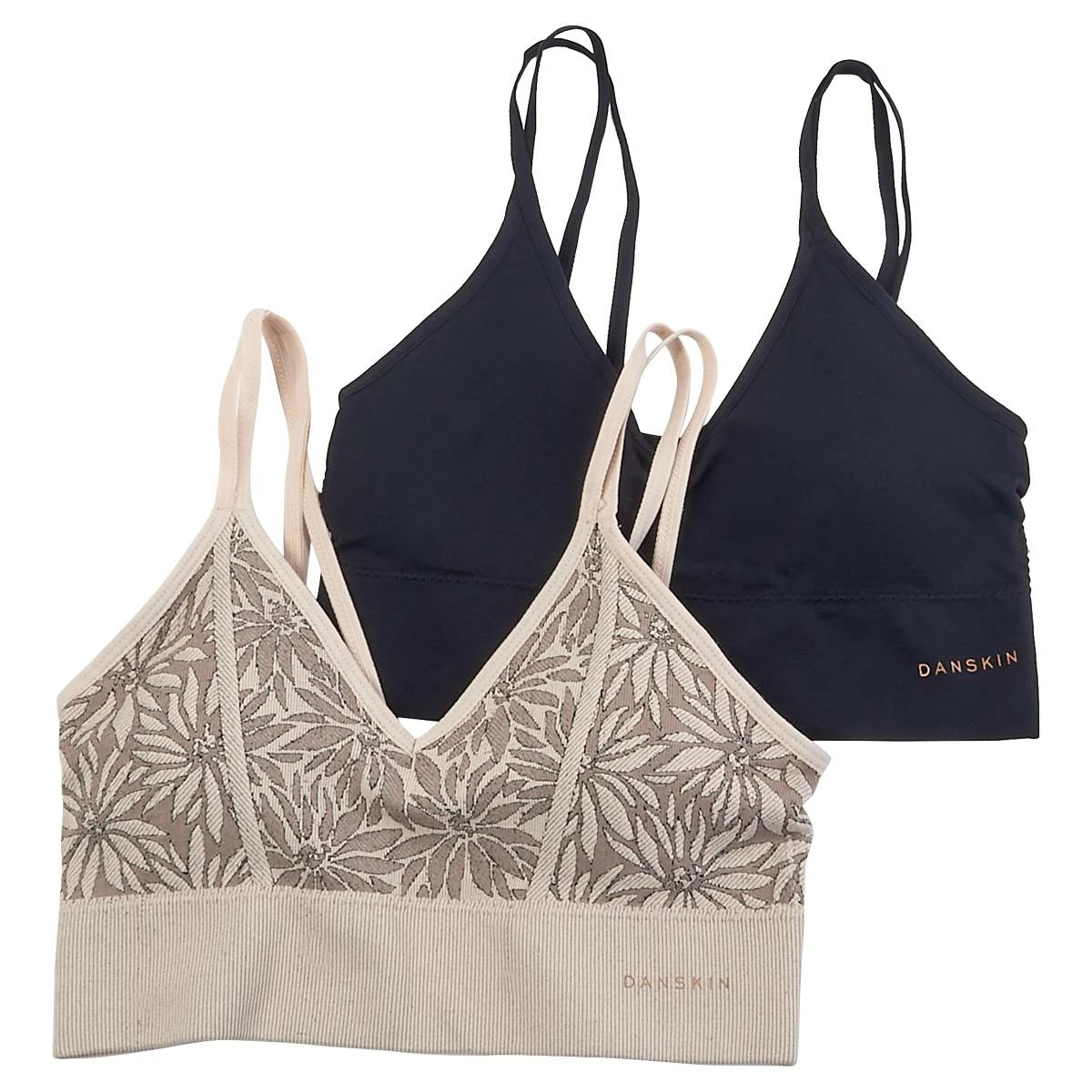 This Womens Danskin 2Pk. seamless comfort wire free bra is a simple design for everyday use. This bra features an elastic band with a signature logo.