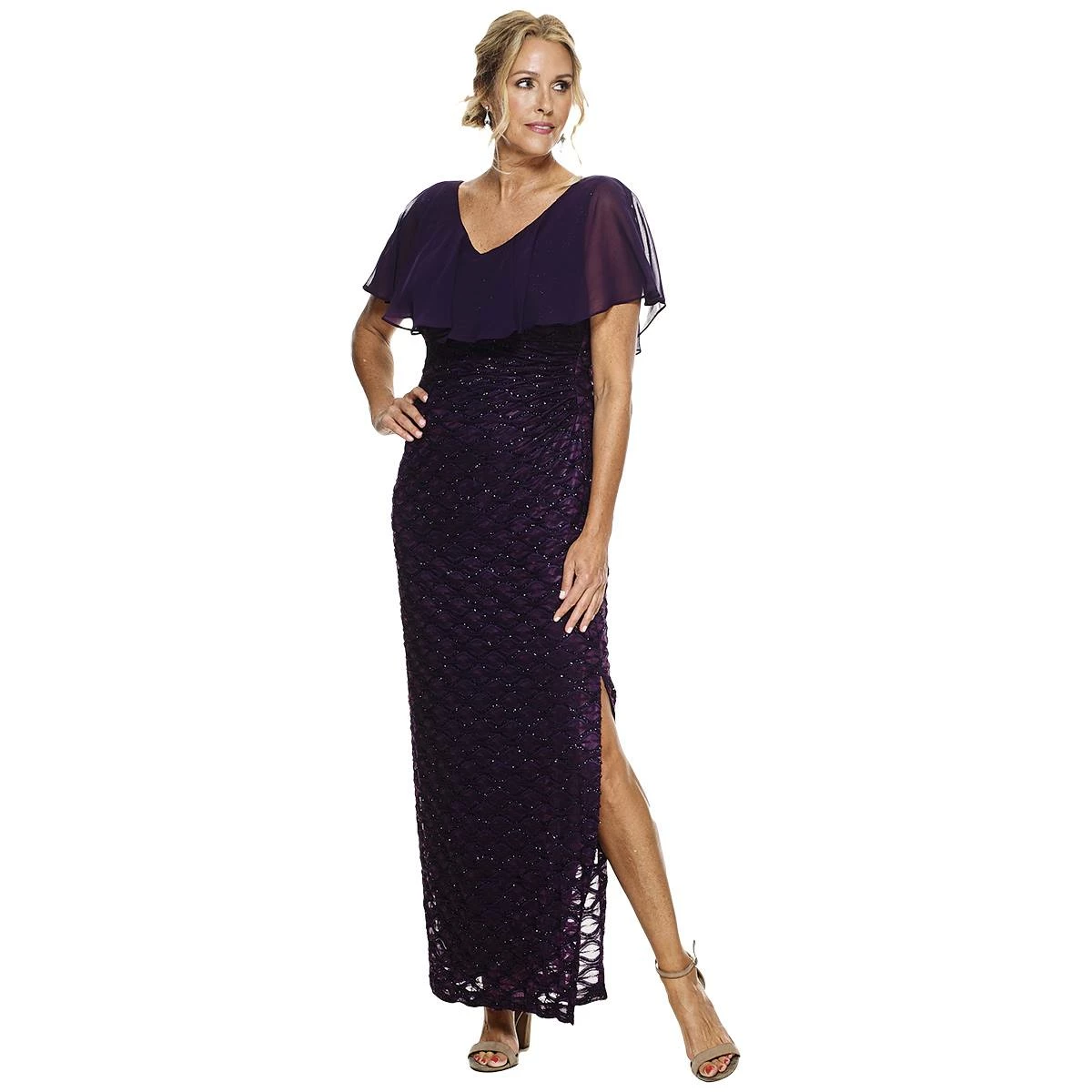 This Petite Connected Apparel chiffon eyelash metallic sheath dress is fully lined and features side ruching to complement your natural figure. The chiffon flounce with a v-neckline creates dimension and adds an extra touch of femininity.