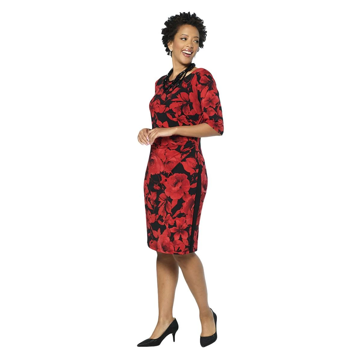 Sharpen your casual style in this Petite Size Connected Apparel floral print dress. This a line dress features a boat neckline and elbow sleeves with a side slit.