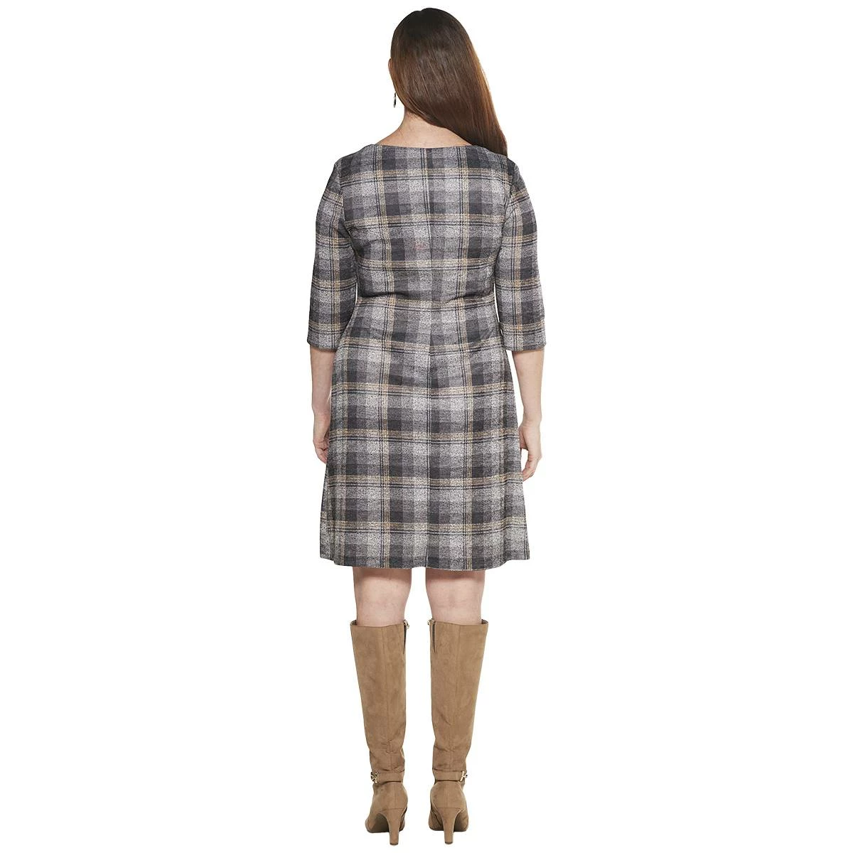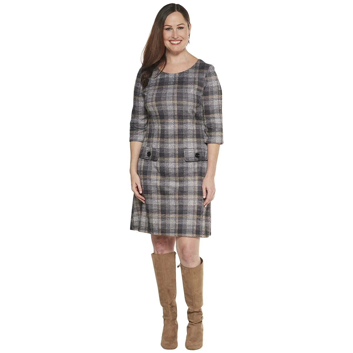 Plaid and pocket details ramp up the sophistication of this Womens Connected Apparel 3/4 sleeve and a round neckline dress. This traditional a line dress is perfect for any occasion.