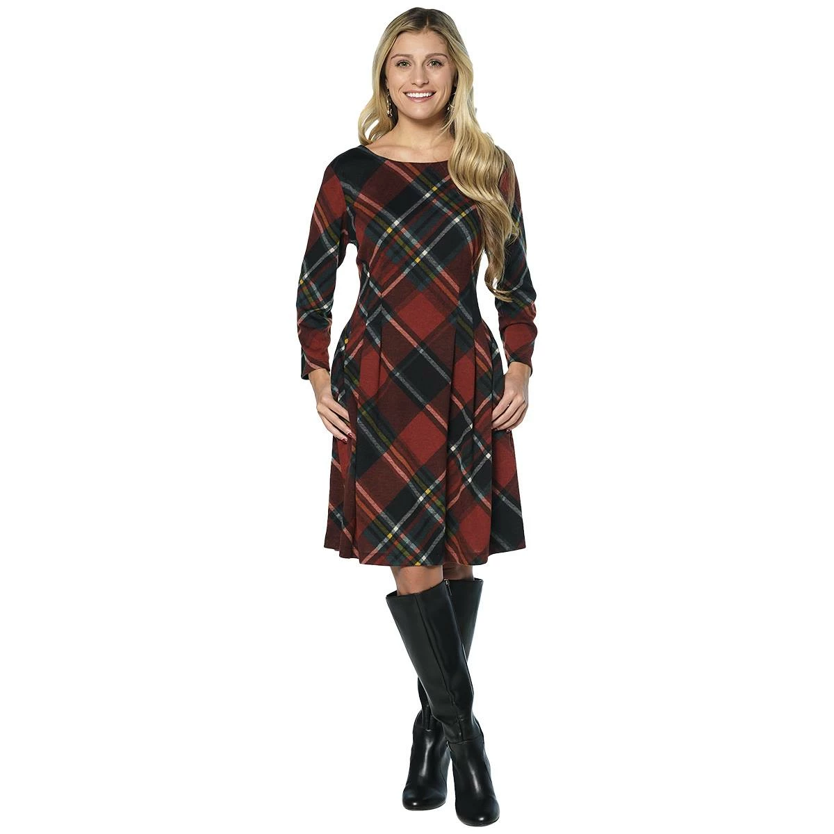 Plaid is always a good choice this Womens Connected Appare plaid dress puts the sophisticated print to good use on this flawless fit & flare dress. Features long sleeves and a round neckline.