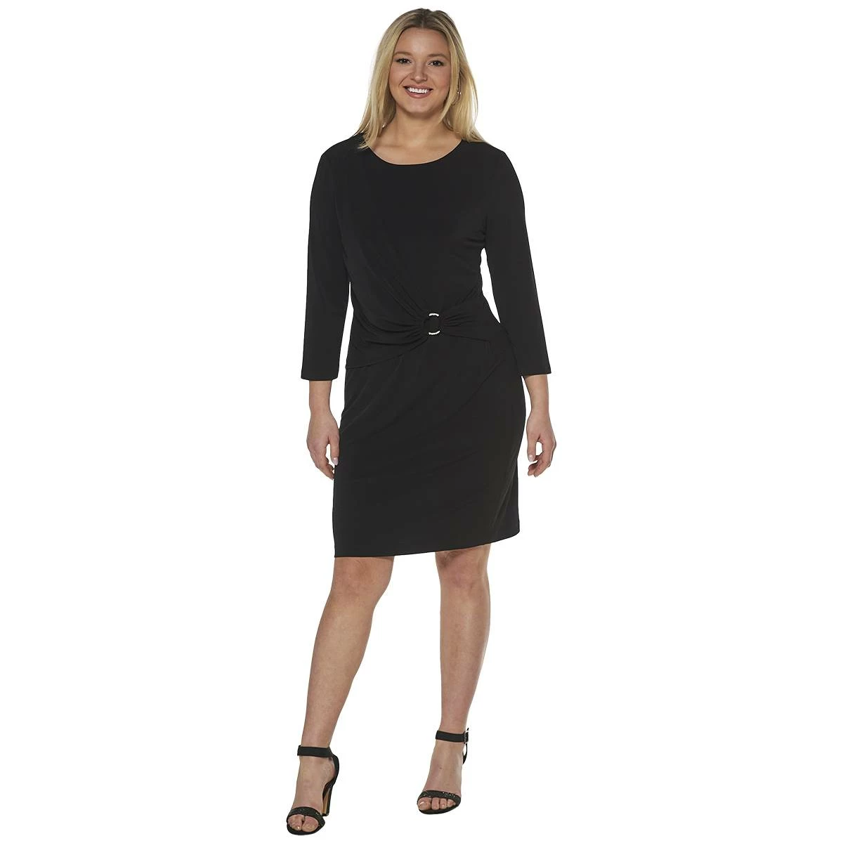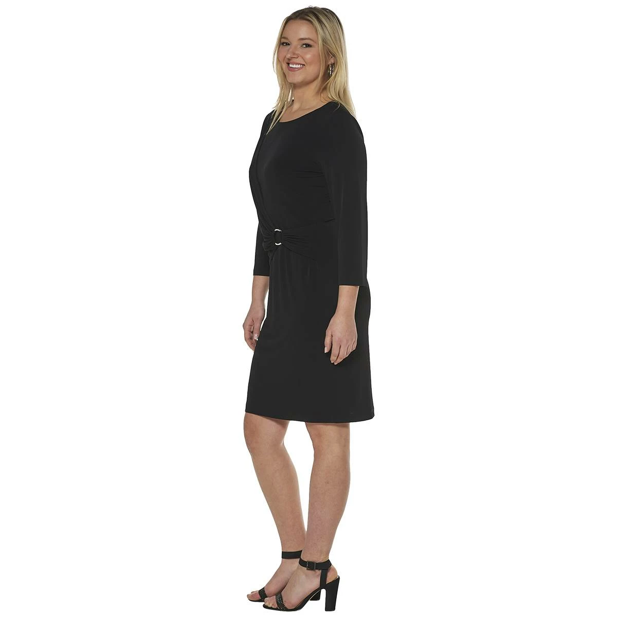 Add this elegant little black cocktail dress that adds coverage while still being feminine and sexy to your wardrobe with this Womens Connected Apparel o ring ity dress.