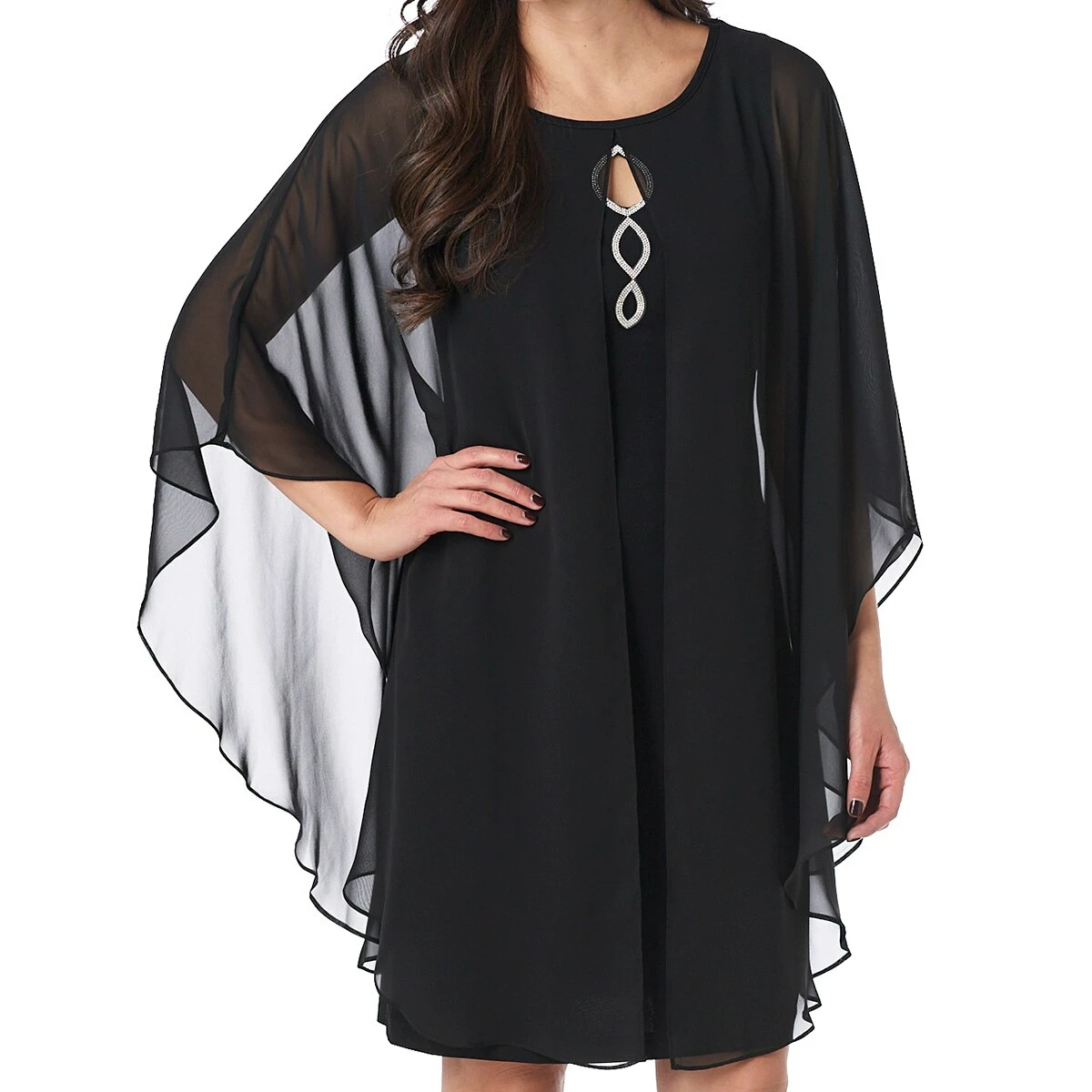 Step out in some bling by wearing this Womens Connected Apparel sheer rhinestone trim dress.