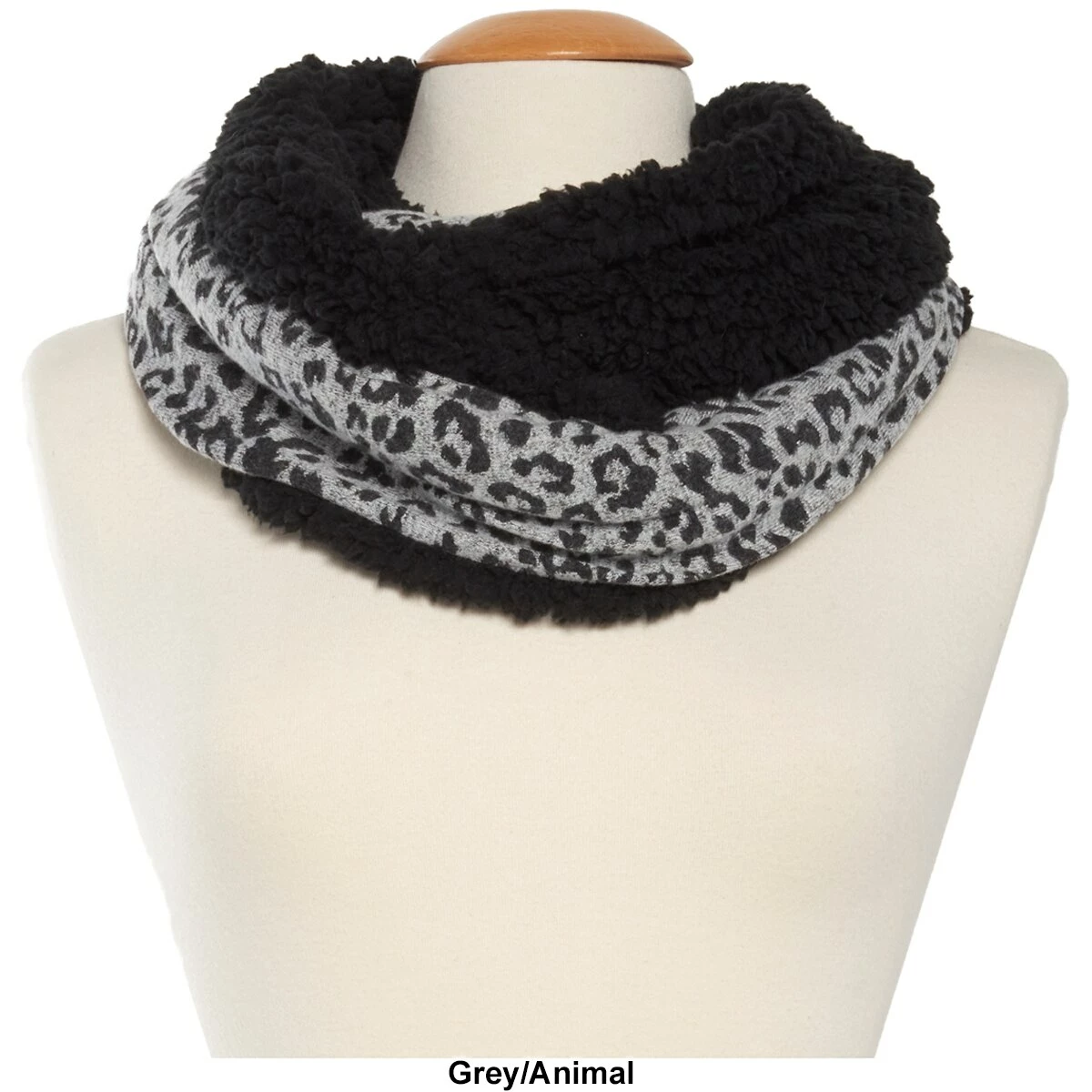 Keep your neck warm in the Womens Cuddl Duds® soft knit infinity scarf. Featuring sherpa lined for extra warmth and a fun leopard print throughout.