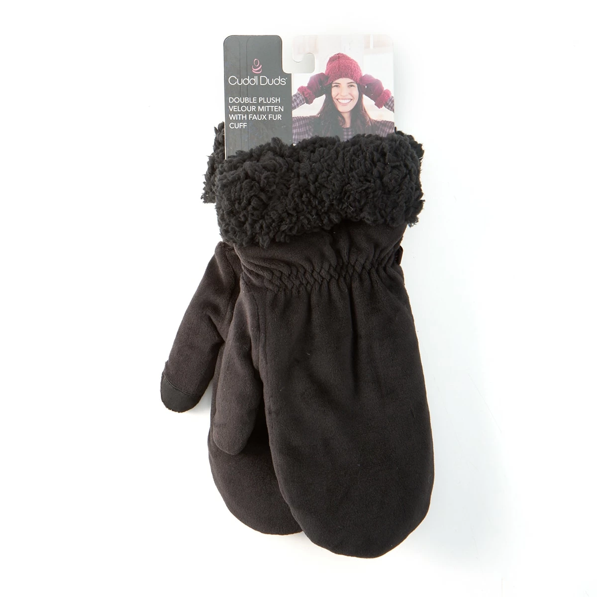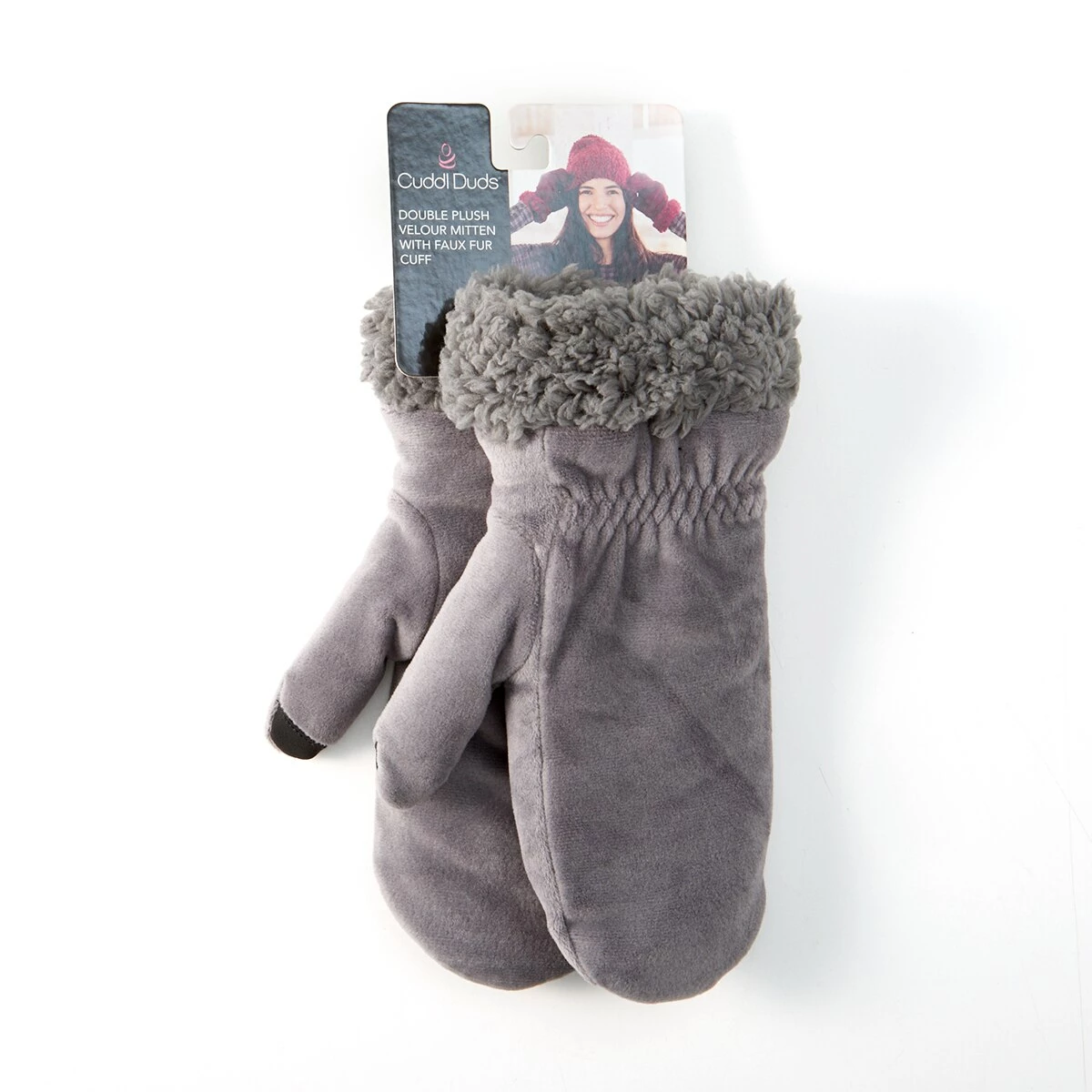 Complete your look with our super soft Womens Cuddl Duds® plush velour mittens, a faux-fur cuff, and a fashion featuring touchscreen compatibility.