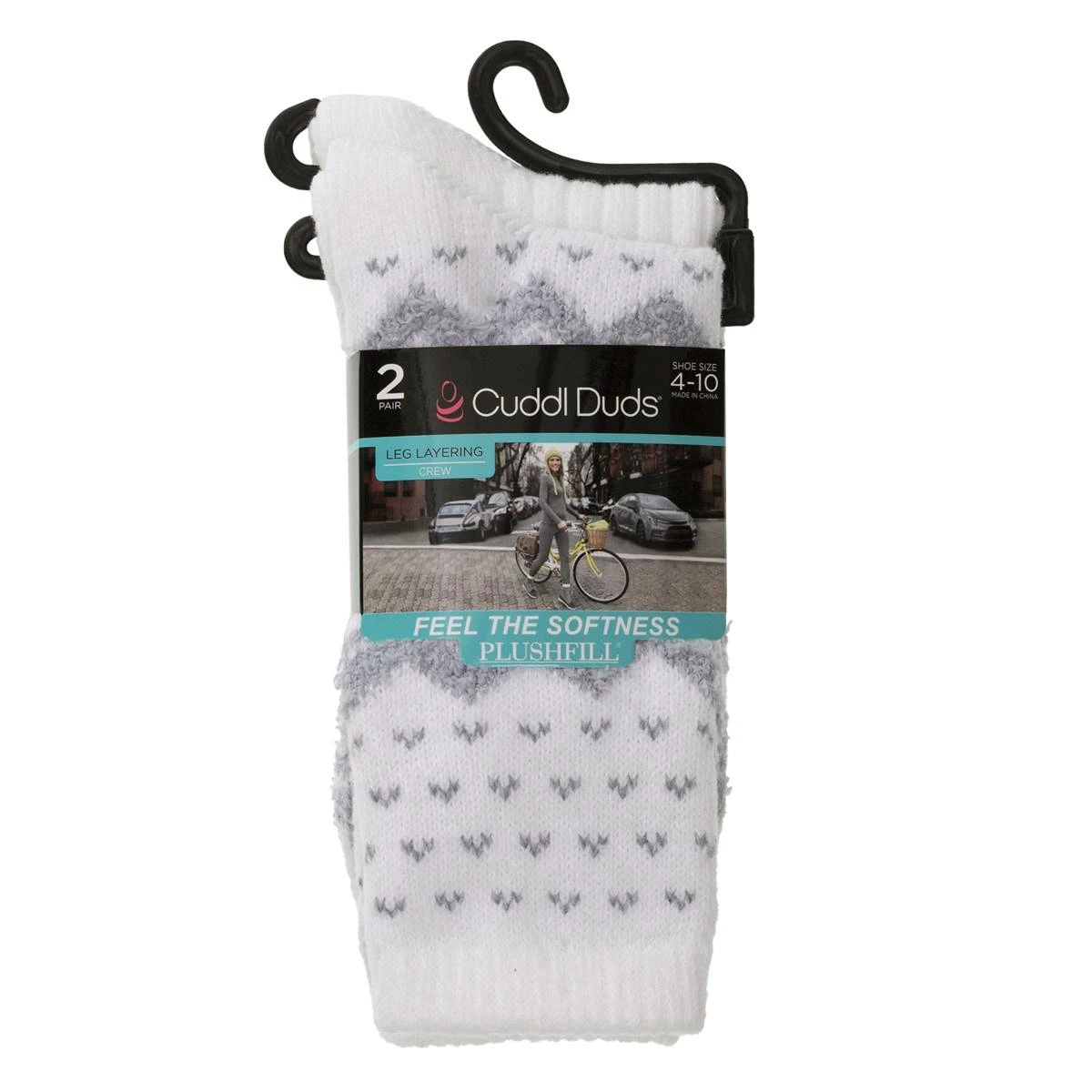 Enjoy ultimate comfort and function with these Womens Cuddl Duds® 2-pack cozy zig-zag snowflake crew socks. With soft PLUSHFILL yarns, these socks are perfect for layering to stay cozy throughout the day.