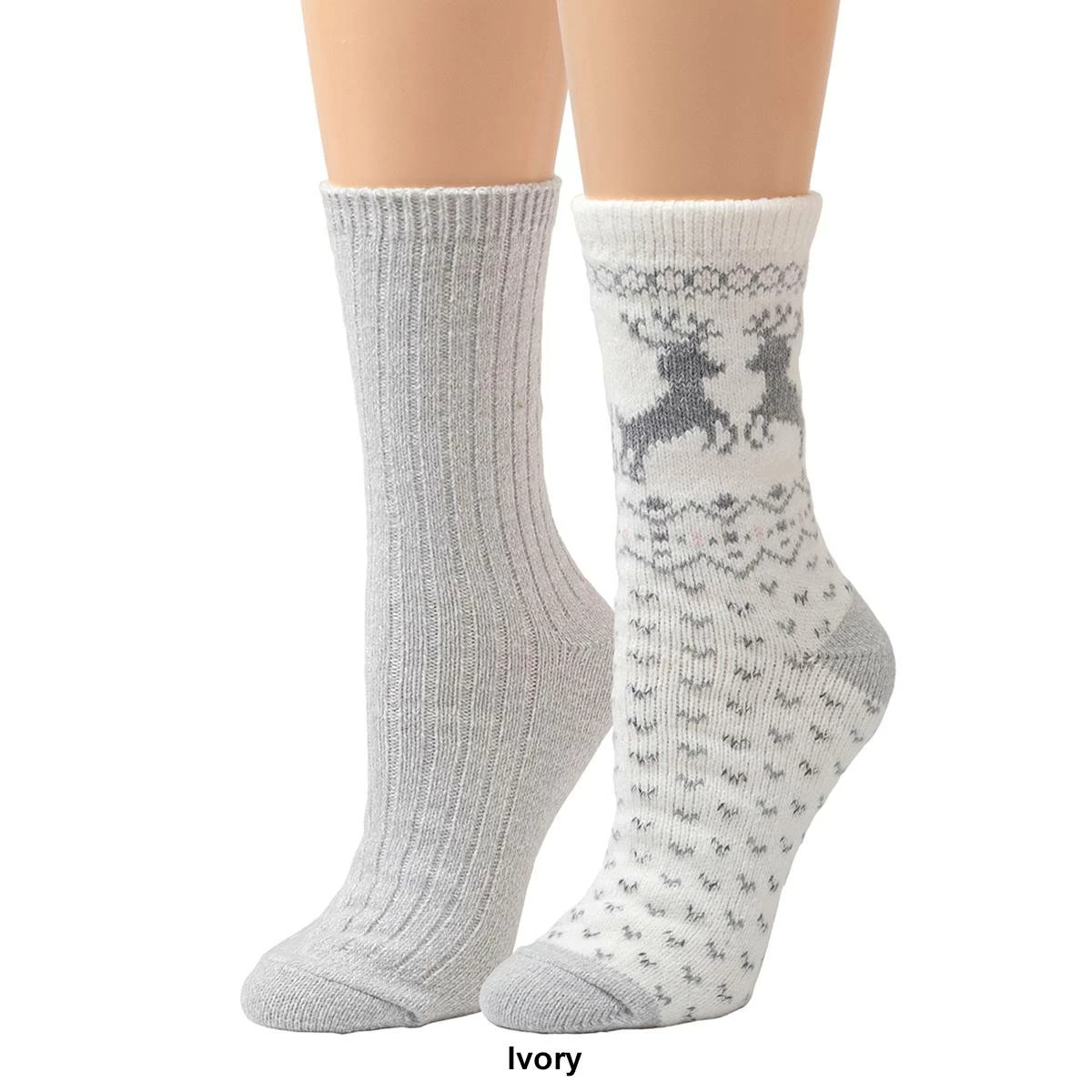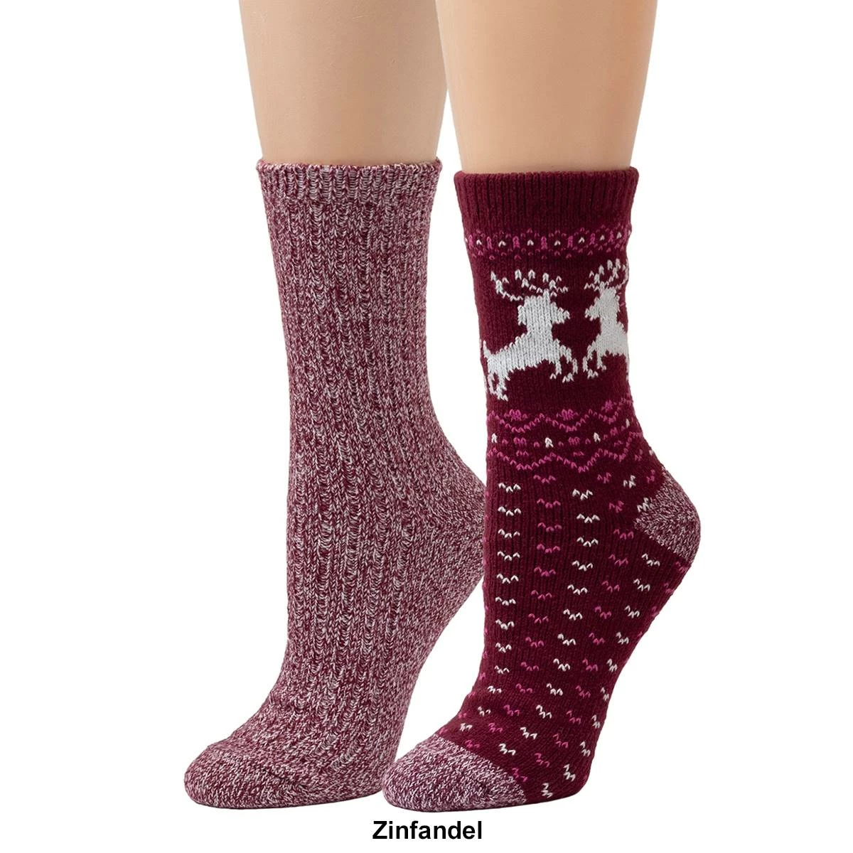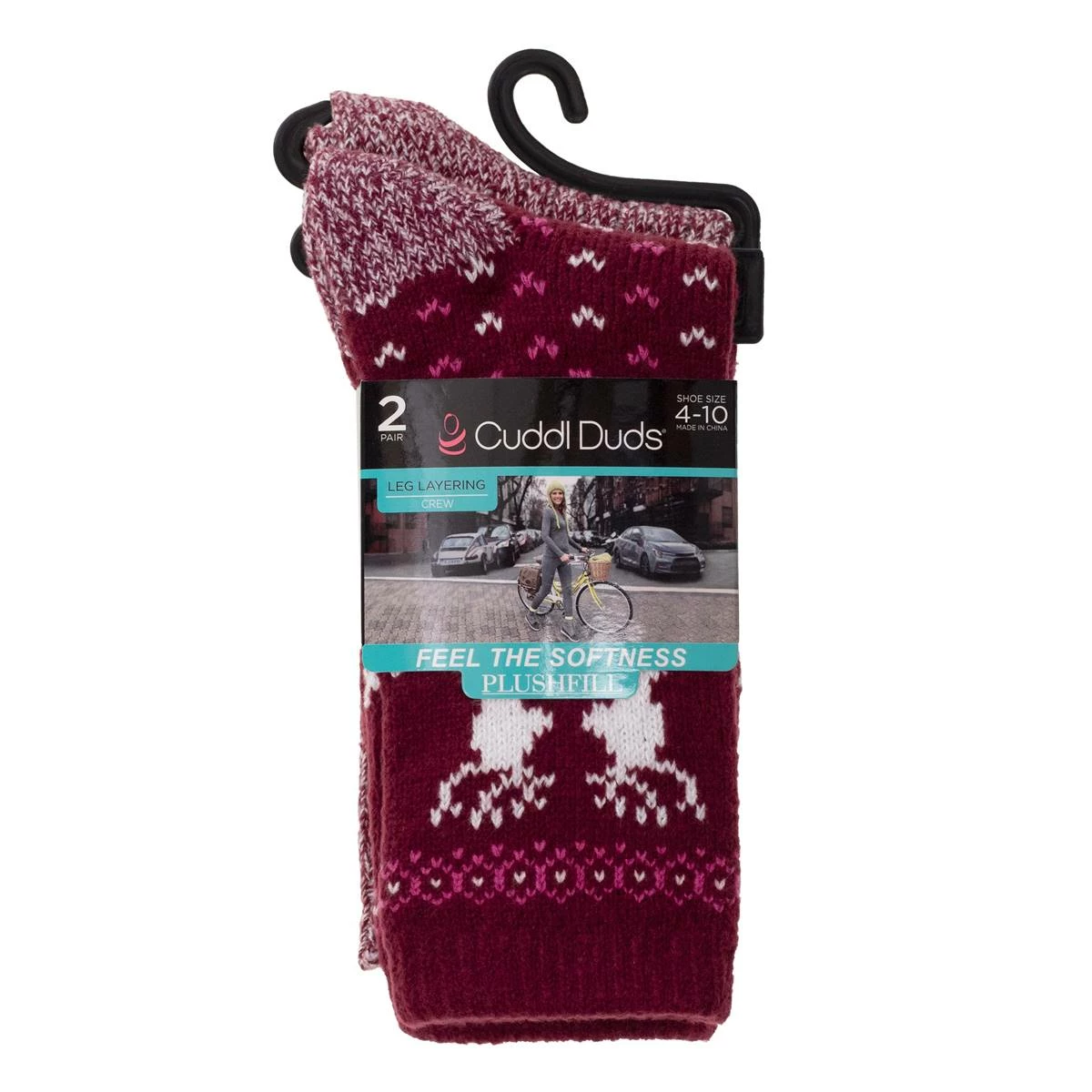 Perfect for cozying up on the couch, these Womens Cuddl Duds® 2-pack reindeer fair isle crew socks leave feet feeling cozy and comfortable.