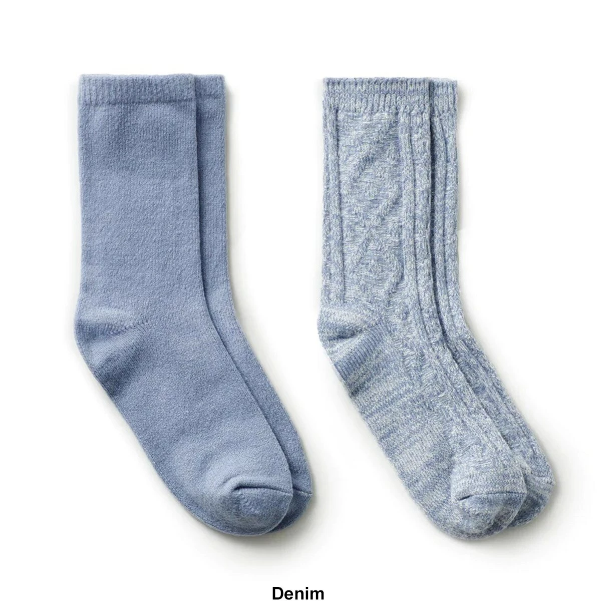 Slip on the Womens Cuddl Duds® 2pk. space dye diamond cable rib solid boot crew socks to keep your feet cozy all day. Under any boots or to lounge around the house, feel the softness with these classic socks.