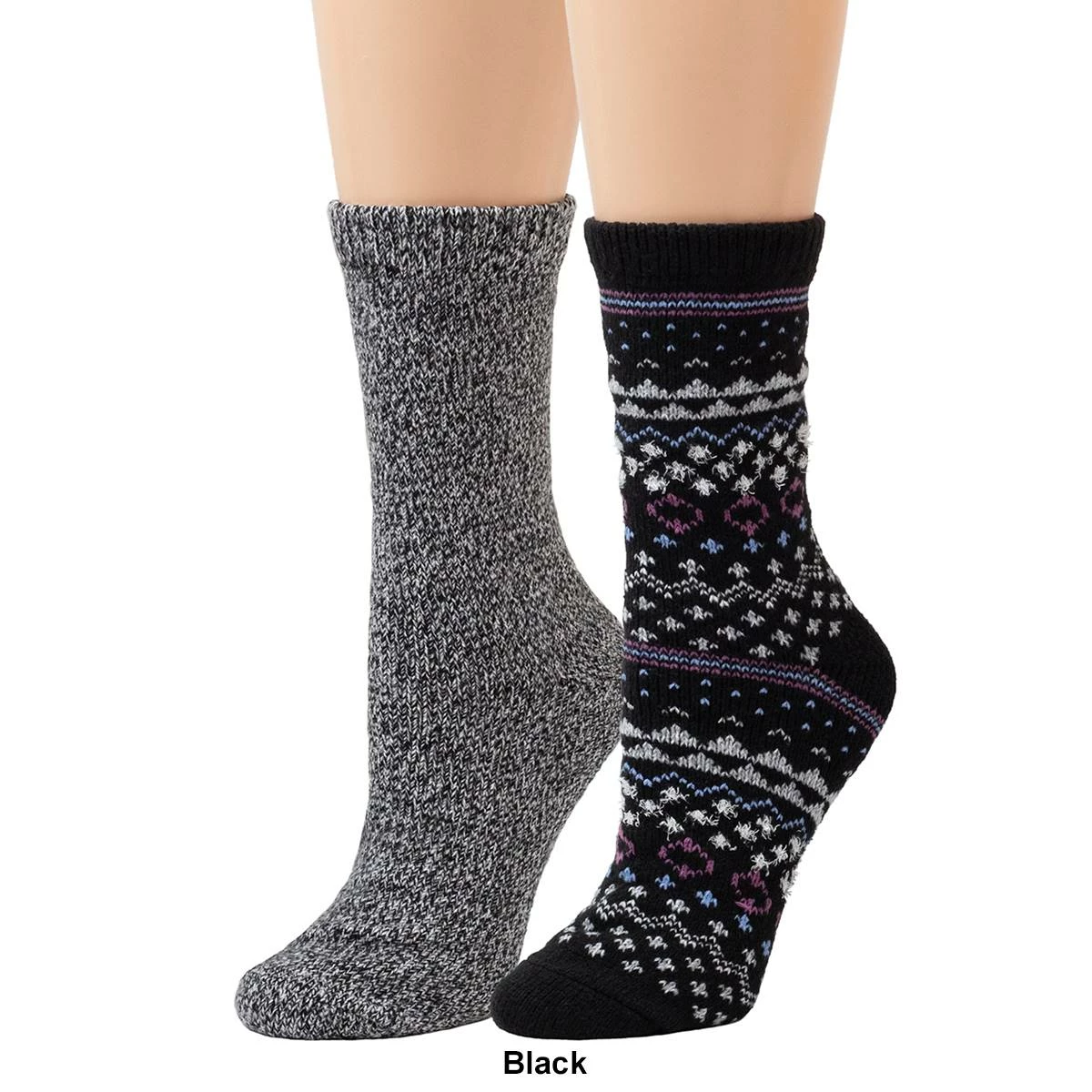 Enjoy the cozy feeling of the Womens Cuddl Duds® geometric feathered fair isle crew socks with soft PLUSHFILL yarns for ultimate comfort.