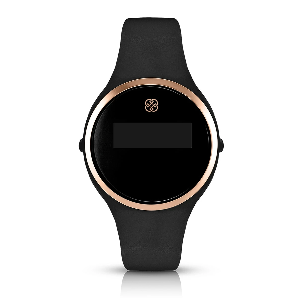 The black silicone band is durable and soft and the 38mm face has a beautiful Rose Gold trim.