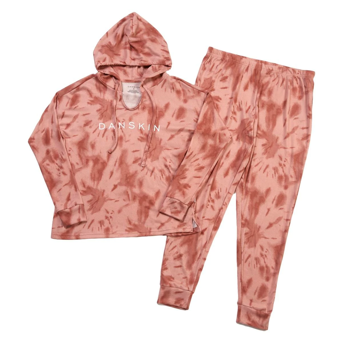 The tie dye Womens Danskin pajama set is the perfect set to snuggle up and lounge all day in. Providing a long sleeve hooded pajama top with a signature logo and matching pajama pants.
