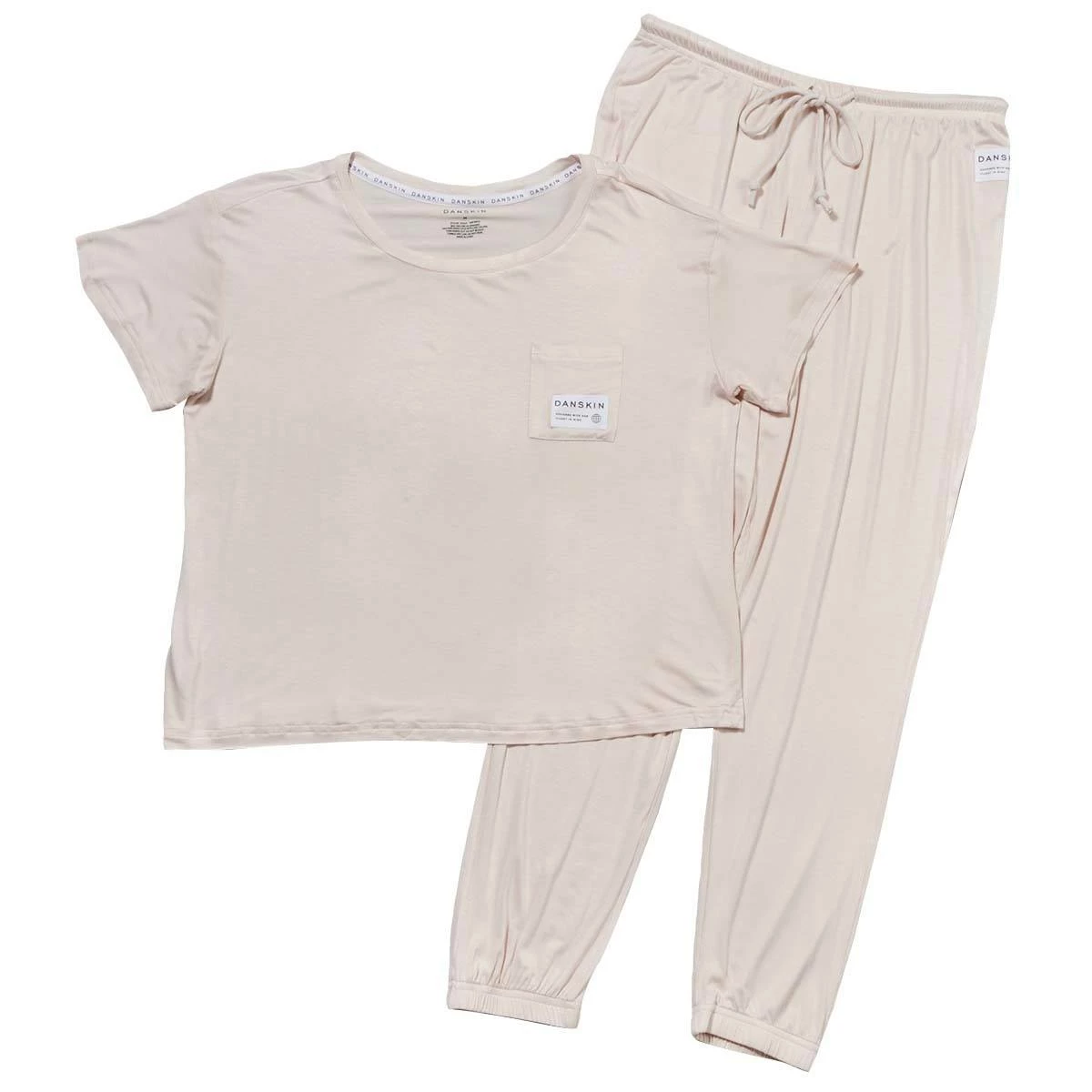 Stay cozy in this Womens Danskin short sleeve Ecovero peached relaxed tee and joggers pajama set. This ultra soft material will keep you comfortable all day or night.
