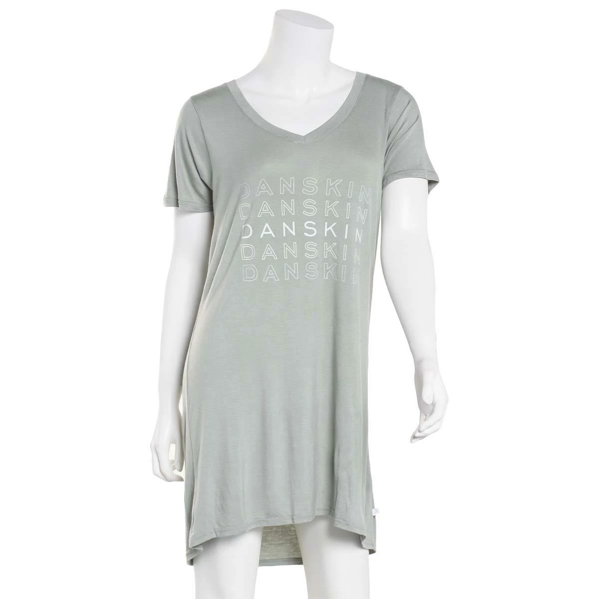This lightweight Womens Danskin short sleeve hi-low screened nightshirt is super soft and lightweight. This simple design will keep you feeling cool and comfortable all night long.